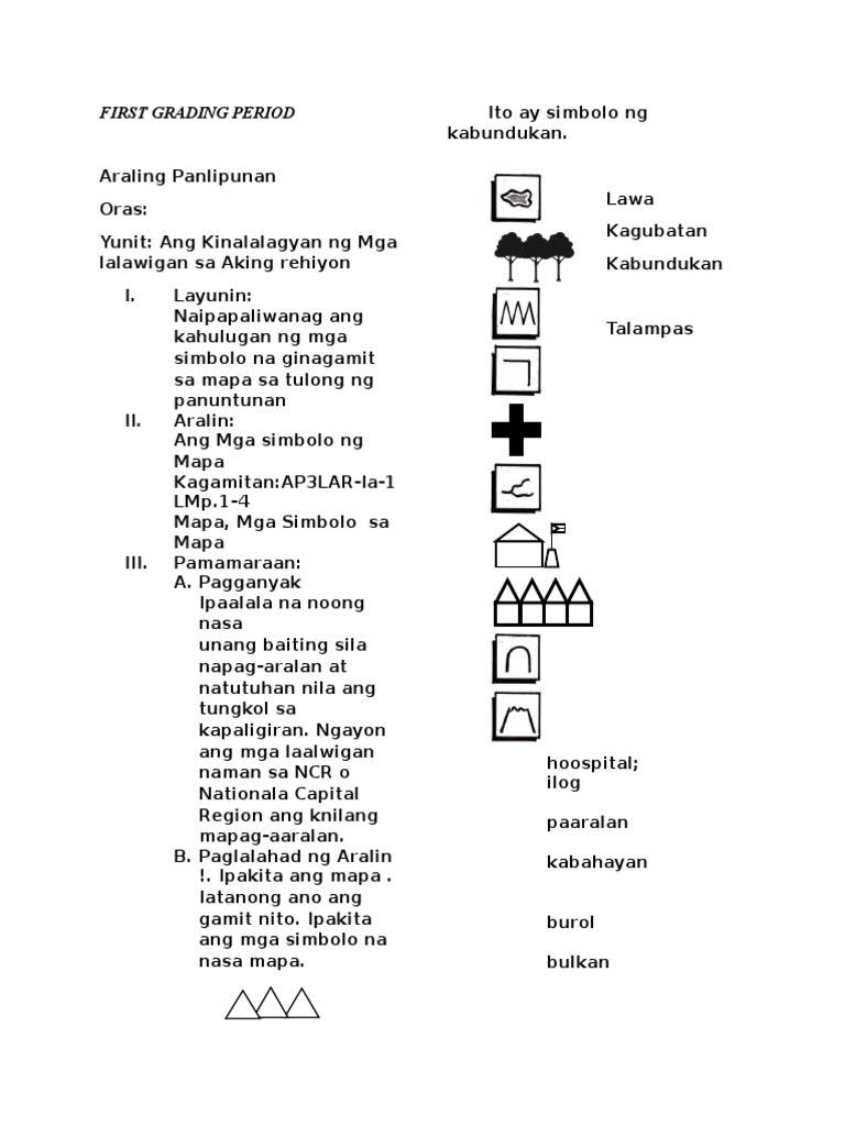 Nasasabi ang kahalagahan ng bawat simbolo na ginagamit sa mapa. Some of the worksheets for this concept are reviewer pambansang sagisag grade 2. Ang modyul na ito ay pinagtulungang dinisenyo, nilinang at sinuri ng mga edukador mula sa pambuliko at pampribadong institusyon upang gabayan ka,. Mapa, pananda, simbolo, uri ng mapa other contents: