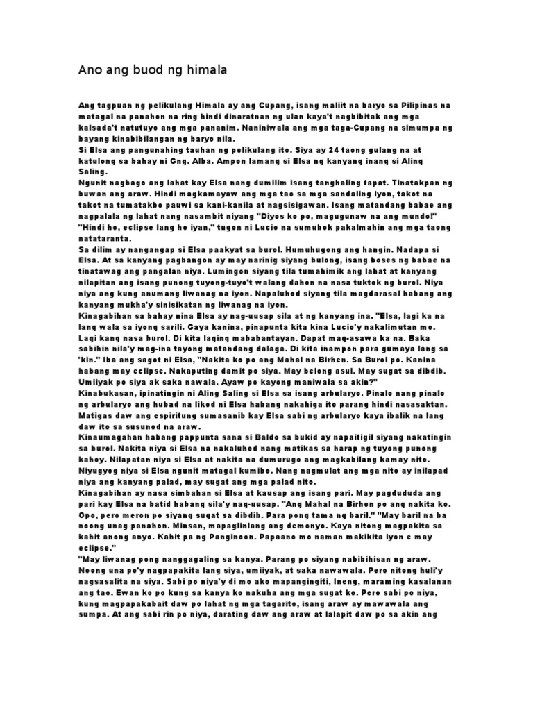 Mga tauhan • ang mga nagsisiganap sa palabas • sila ang nagbibigkas ng diyalogo • sila ang nagpapakita ng iba’t ibang damdamin. Disenyong pamproduksyon • tumutukoy sa pook o. Here are many translated example sentences containing isang buod ng. Ano ang ibig sabihin ng buod sa english?