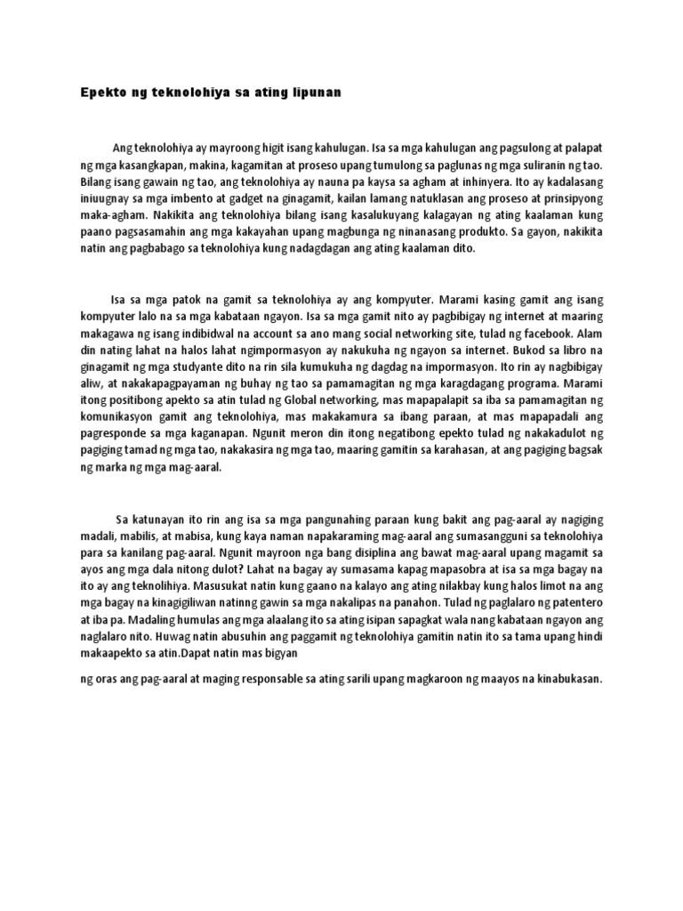 Topics Epekto Ng Teknolohiya Sa Ating Lipunan