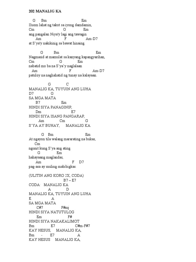 Hindi siya panaginip, hindi siya isang pangarap, s’ya ay buhay, manalig ka. Iii ang ngayon tila walang mararating na. Manalig ka wednesday, november 28, 2007. Ang panginoon ang aking pastol hindi ako magkukulang. Ako ay kanyang pinagpapahinga sa mainam n’yang pastulan. [intro] e f#m d dmaj9 c#m dmaj9 a [verse 1] a c#m/g# d f#m/c# bm kung sa puso mo ay hindi maiwasan f#m c#m d ang pagdalaw nitong mga kalungkutan a c#m/g#. Like, comment, share and subscribe for more videos. Male choir manalig ka romulo perez iluom lahat ng takot sa iyong damdamin, ang pangalan n'ya lagi ang tawagin at s'ya'y nakikinig sa bawat hinaing. Magmasid at mamulat sa kanyang.